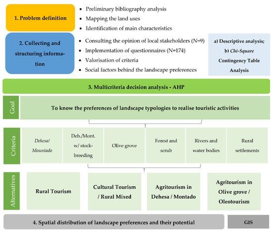 The different landscape typologies under study generate different effects on the tourism potential. Thus, the information obtained through the questionnaires made it possible to establish two distinct types of analysis following the methodological scheme presented below (Figure 5).