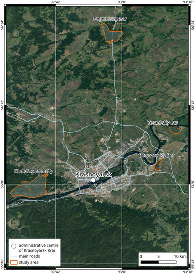 - Ministry of Ecology and Rational Nature Management of the Krasnoyarsk Krai. State Report «On the State and Protection of the Environment in the Krasnoyarsk Krai in 2020»; Ministry of Ecology and Rational Nature Management of the Krasnoyarsk Krai: Krasnoyarsk, Russia, 2021; p. 327. [Google Scholar]