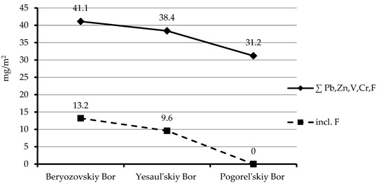 | Microelements’ contents on the surface of needles, mg/m2 | 29.7 1/41.1 2 | 27.9/38.4 | 4.5/31.2 |