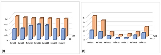 (a) Gas and (b) particulate pollution levels comparison in Santiago de Los Caballeros from period 8 to 14.