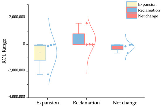 From 2000 to 2020, changes in rural settlements were mainly concentrated in the central part of the Northeast Plain. The dynamic changes (Figure 5 a) in rural settlements are closely related to cultivated land. The land use types occupied by expansion (Table 3) are mainly cultivated land, accounting for 81.60%, of which dry land accounts for 92.30%, paddy fields account for 7.70%, and woodland, grassland, and water systems account for only a small proportion. The organic matter content of the expanded cultivated land was 96.88%, and the organic matter content was between 20 g/kg and 30 g/kg (Figure 5b), accounting for 2.31%. The organic matter content of the cultivated land occupied by the expansion of rural settlements was higher. Impact of the changes (Figure 6) in rural settlement on cultivated land (ROL) < 0 indicates that the cultivated land reclaimed by rural settlements cannot offset the impact of rural settlement expansion on cultivated land.