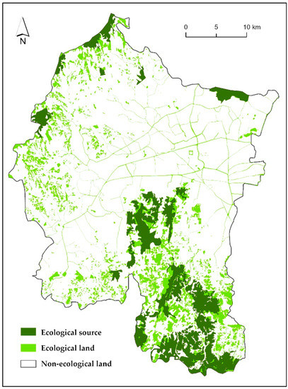 As a large developing country with a complex and fragile ecological background, China has been facing far more serious ecological problems than Western countries. It is more relevant and urgent for China to build a framework for bottom-line ecological system management. The concept of an ecological security pattern (ESP) was first put forward by Kongjian Yu in 1996 and defined as the potential spatial pattern composed of strategic portions and positions of the landscape that have critical significance in safeguarding and controlling certain ecological processes [23]. ESP was proposed as one of the three strategic objectives in the report of the 18th CPC National Congress in 2012. The Fifth Plenary Session of the 18th Central Committee further stated that it is necessary to adhere to green development, make use of nature properly, and build a scientific and reasonable ecological-security pattern. With the Fifth Plenary Session of the 19th Central Committee in 2020 clearly offering to optimize the spatial layout of territory, building a scientific and reasonable ESP has become the basic premise for city construction and social development in China. With the analysis and simulation of landscape processes (the expansion of the city, the spatial movement of species, the flow of water and wind, the diffusion of disasters, etc.), ESP is implemented to determine key landscape elements and important spatial locations and connections [24]. The construction of an ecological-security pattern can help regulate ecological processes and allocate natural resources, and has become an effective spatial way of alleviating the contradiction between ecological protection and economic development [8,25].