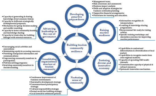 Fostering diverse and innovative economy. Successful engagement within markets is vital to the resilience of tourism communities, otherwise any tourism system will come to collapse without pertinent configurations of economy in a tourism community [18]. From the view of developmental dynamics in going through contextual market changes, planned adaptive strategies for continuity of member businesses must be based on, derived from, and manifest on current configurations of economy in tourism communities. By identifying their susceptibility to market changes, many pioneering studies on community resilience have indicated the importance of community’s avoiding simple operations in a certain sector, thus encouraging a diverse and innovative economy [11,40,41]. To effectively cope with changes, resilience theories acknowledge the needs for catering to evolutionary interests of customers and simultaneously recognize new opportunities that changes generate [11]. During the processes of pursuing diverse and innovative economy, tourism communities should figure out approaches that nurture customers’ willingness to support local business and community members’ willingness to support each other with interests of improving everyone’s opportunities [40]. More practically with respect to their specificities, tourism communities have to take strategies that consider both the demand side and supply side of the market. From the demand side, continuous improvement mechanisms for tourism products and services are fundamental to keep up with changing demands. To reinforce the mechanisms, market investigation and differentiation is essentially important in acknowledging customers’ needs diversely and precisely. Exploring and exploiting regional customers’ profiles and feedbacks from both online and offline can help firmly seize the local market since tourism communities are largely locale-specific, while analysis on cross-regional customers can help tourism communities stay well-informed and capture potential needs and overall trends in a broader view. From the aspect of supply side, a strong local focus should be emphasized by innovatively drawing on locally characterized physical and cultural resources [11]. Diverse catalytical streams of tourism economy should be further incorporated, such as research and education applications that value and communicate local landscape and cultural heritage, experiential applications that enjoy local lifestyles, and e-commercial projects that foster market development and enhance robust revenue for all available local specialties. All the projects and applications should be implemented as common projects and operated as a mechanism to benefit the possible majority of tourism community members. In general, diverse and innovative economy is an intrinsic attribute that indicates economic adaptive capability of tourism communities in front of various changes.