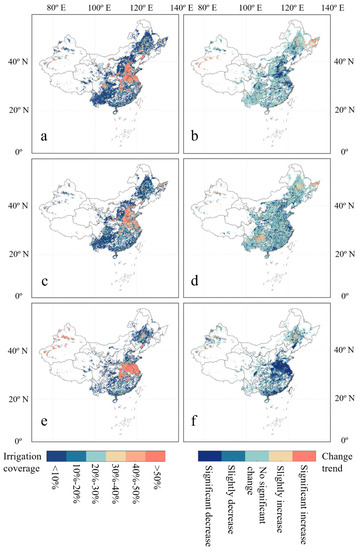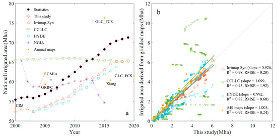 - Zhang, C.; Dong, J.; Zuo, L.; Ge, Q. Tracking spatiotemporal dynamics of irrigated croplands in China from 2000 to 2019 through the synergy of remote sensing, statistics, and historical irrigation datasets. Agric. Water Manag. 2022, 263, 107458. [Google Scholar] [CrossRef]