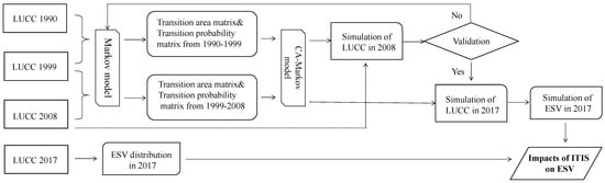 Specifically, the spatial and temporal evolution of ESV on Hainan Island is obtained based on the historical land-use cover data of Hainan Island. The net spatial and temporal impact of strategy implementation on ESV is assessed by comparing the spatial and temporal distribution with the spatial and temporal distribution of ESV after the implementation of the ITIS strategy. Next, the counterfactual analysis framework and Cellular Automata (CA)-Markov model are combined to dynamically simulate the spatio-temporal distribution of ESV in Hainan Island under the hypothetical scenario that the ITIS strategy is not implemented, and to compare the analysis with the spatio-temporal distribution of ESV after the implementation of the ITIS strategy to assess the net spatio-temporal impact of strategy implementation on ESV.