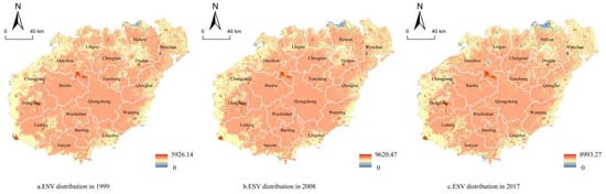 Temporal evolution of ESV in Hainan Island from 1999 to 2017.
