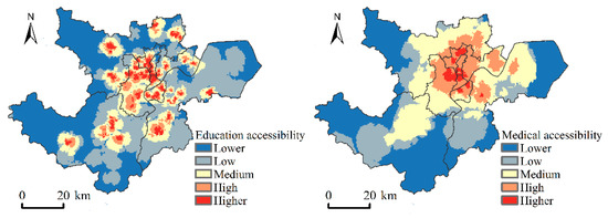Figure 8. The influence range of educational and medical facility environment. - (2)
