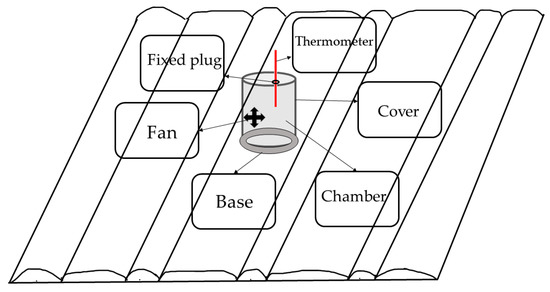 Nitrous oxide was collected in a static closed chamber (Figure 3). The chamber is cylindrical with an outer diameter of 38 cm, a height of 35 cm, an inner diameter of 36.5 cm, and is made of a 1 mm-thick stainless-steel plate. It was buried at the center of each plot and was not moved throughout the year [7]. The box as coated with reflective aluminum foil thermal insulation films, and the top of the box was equipped with a round plug for inserting a thermometer to read the temperature in the box. A plastic fan with a width of 10 cm was installed on the side wall of the box for mixing the gas. There is an air hole in the side wall of the box, and a rubber tube is connected to the syringe for sampling. The gas samples were collected once or twice a month after maize sowing in 2020 and 2021 [23]. Samples were analyzed using an Agilent 7080B gas chromatograph (Agilent 7080B, Santa Clara, CA, USA) under the following chromatographic conditions: PoraparkQ15m × 0.53mm × 25μm, injection port at 150 °C, split injection, ECD detector, detection temperature at 300 °C, column temperature at 45 °C, column flow rate of 3.3 mL min−1, and the carrier gas had high-purity N2.