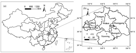 Location of study area: (a) geographic location in China; (b) Wuhan urban agglomeration.