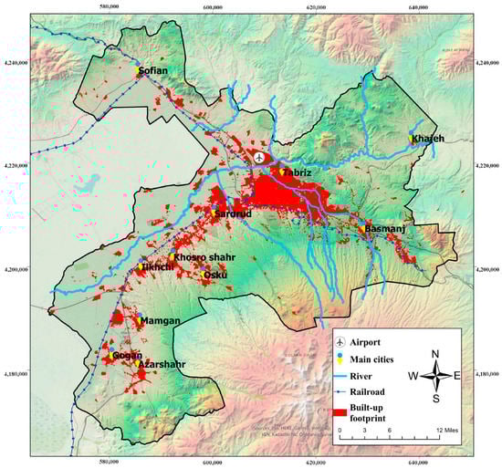 Iran’s major urban areas have kept pace with the rapid urbanisation and population increase seen in other emerging nations during the last few decades [16,17]. Population growth outpacing the expansion of available resources is always going to lead to this outcome [17]. The population, on the one hand, has grown substantially during the last decade [18]. In contrast, most of the land is uninhabitable because of things like arid deserts and towering mountains [19]. Due to climate change, Iran has also been experiencing drought and diminished water availability [20,21]. All of these factors have contributed to the growth of existing megacities and the emergence of new ones in various parts of the nation [18,22]. Tabriz metropolitan area (TMA) is undergoing fast and expanding urbanisation, much like the other major cities [21] in Iran [17]. Extensive land-use changes and consequent environmental and social challenges [17,21,22] are being brought on by the growth and spread of industrial hubs throughout the metropolitan and periphery areas, as well as the development of industrial towns and small scattered enterprises. In addition, the drying up of Urmia Lake in the region presents significant environmental and social challenges to the future sustainable development of TMA [23,24,25].