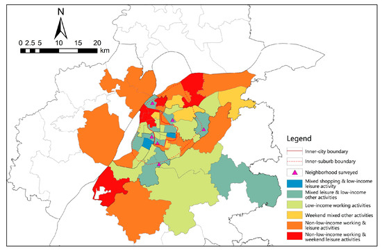 - Zhou, S.; Deng, L.; Kwan, M.-P.; Yan, R. Social and spatial differentiation of high and low income groups’ out-of-home activities in Guangzhou, China. Cities 2015, 45, 81–90. [Google Scholar] [CrossRef]
