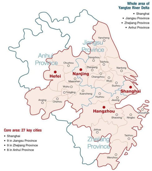 Planning scope for the YRD region (source from Shanghai Daily website).