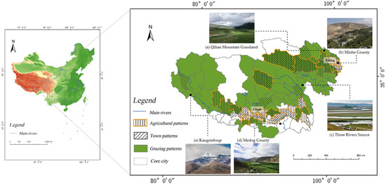 - Yang, J.; Wang, Y.C.; Guo, L.; Xue, D. Patterns and structures of land use change in the Three Rivers Headwaters Region of China. PLoS ONE 2015, 10, e0119121. [Google Scholar] [CrossRef]