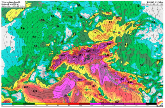 Vaia is the name given to the hurricane that hit all of northeastern Italy on 29 October 2018 (Figure 2).