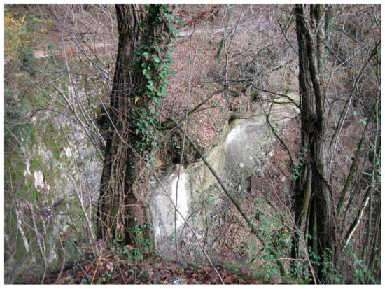 - Costa, V.; Doglioni, C.; Grandesso, P.; Masetti, D.; Pellegrini, G.B.; Tracanella, E. Carta Geologica d’Italia alla scala 1:50.000. Note Illustrative del F°63 Belluno, 74; 1979. Available online: https://www.isprambiente.gov.it/Media/carg/note_illustrative/63_Belluno.pdf (accessed on 1 August 2022).