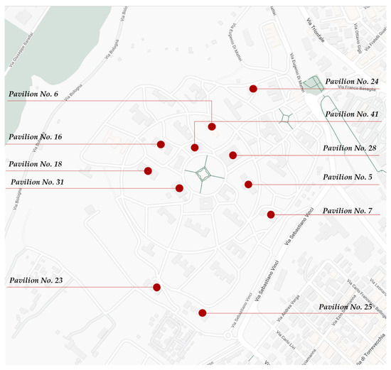 As shown in Figure 5, the monumental compendium is organized in pavilions spread throughout the external park area in which different functions will be included, consistent with the structure of the pavilions and with the overall project solution.