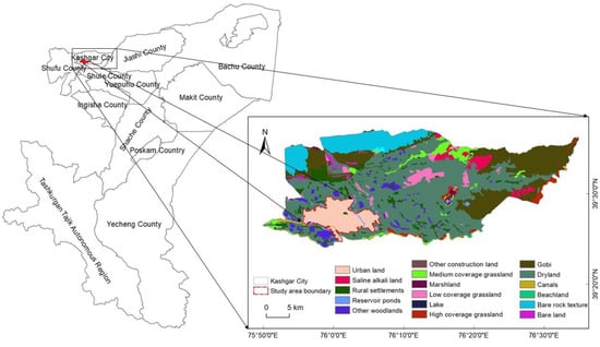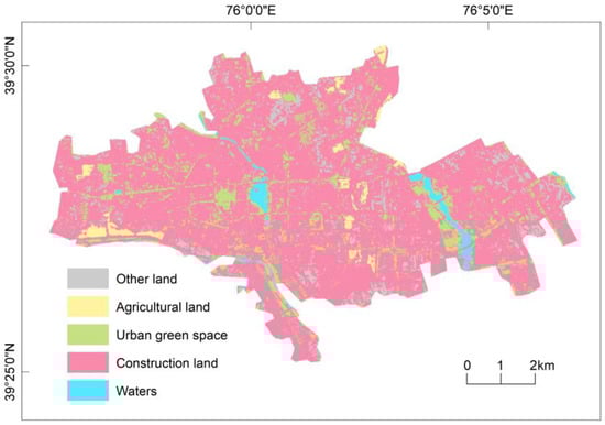 Spatial distribution of urban land use in Kashgar city.
