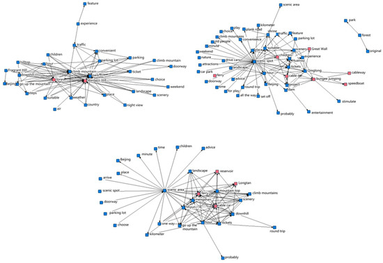 Figure 18. The semantic web of mountain landscapes in various administrative regions (From left to right: Haidian District, Huairou District, and Miyun District).