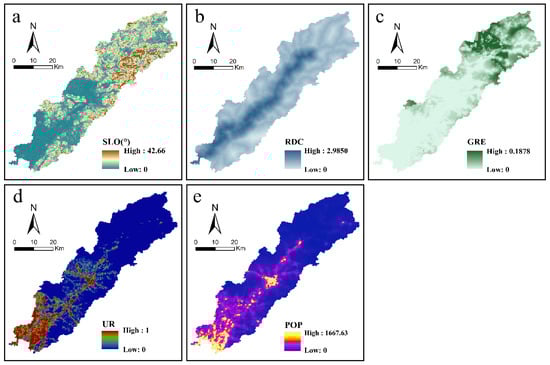 | Human Settlements (urban and rural) | Raster data | 30 m | 2005, 2010, 2015, 2017 | Impervious surface dataset. Available online: http://data.ess.tsinghua.edu.cn/ (assessed on 1 June 2022) |