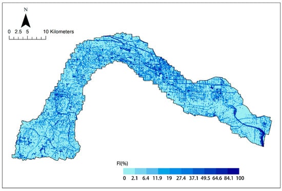 Flood inundation intensity (FI) at 10:31 pm on 20 July 2021 in the Jialu River System in greater Zhengzhou, China.