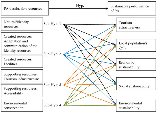 The results show a direct effect of resources on sustainable performance, although not all types of resources significantly explain the performance of a PA (Table 5). This is true for all the dimensions of tourism performance taken as dependent variables, resulting in only partial support for the main working hypothesis as well as the various sub-hypotheses derived from it.