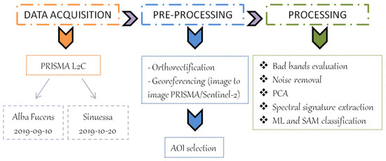 Methodological workflow followed to study capabilities and limits of PRISMA sensor.