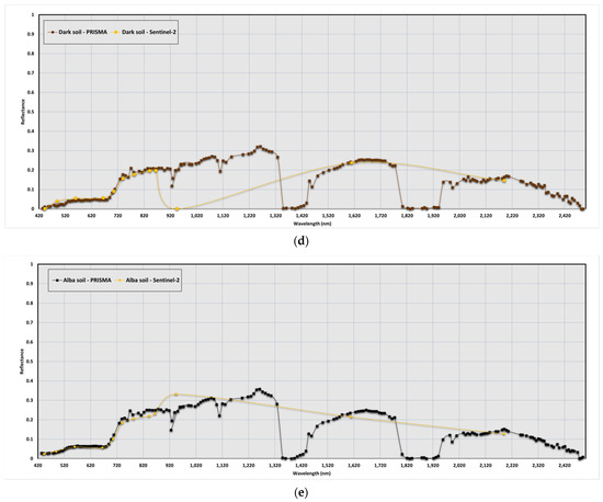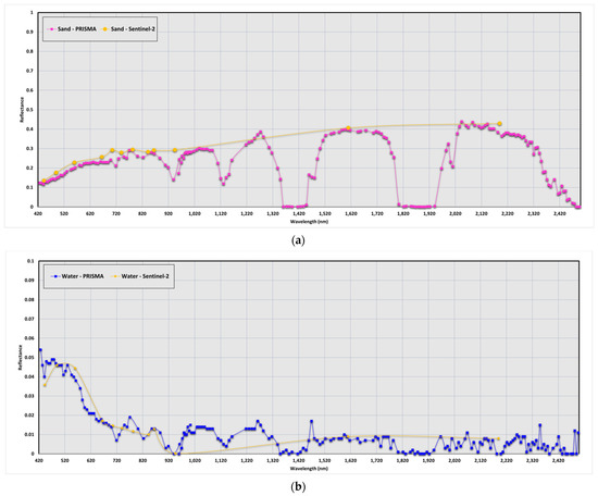 3.3. PRISMA and Sentinel-2 Spectral Signatures