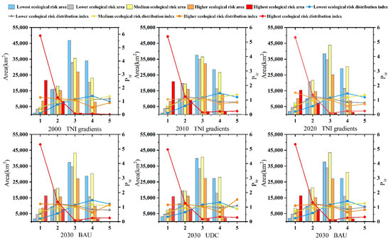 Area and gradient distribution index of each level of ecological risk.