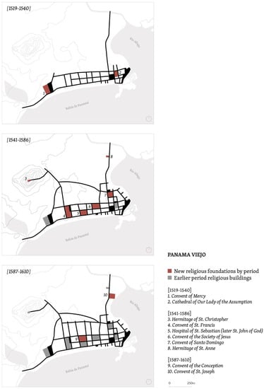 Evolution of the city of Panama Viejo through religious buildings. Source: Authors based on historical cartography and recent hypotheses [].