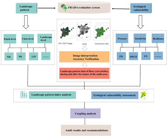 In China, politics are the main driver of change in forest resources within an administrative region during the governance cycle. Accordingly, this paper introduces the theories and methods of landscape ecology to conduct the scientific FRADA and enrich the theoretical results in this field. With the support of spatial information technology, this study conducted a FRADA evaluation method from the perspective of ecological sustainability. Specifically, we provided a way to assess the evolution of forest resources in landscape structure and function in the audit area, which can assist other traditional audit methods in identifying the reasonableness of officials’ decisions before and after their tenure. On the one hand, the evaluation results are used as an important basis for officials’ tenure appraisal, rewards and punishments, as well as to promote the officials’ tenure to improve the importance and scientific understanding of forest resource protection [25]. On the other hand, it provides timely identification of possible threats to the sustainable development of forest resources in the audited region, as well as strategies for future management. Meanwhile, an audit sample area with rich forest resources was selected in China, and an empirical study was carried out by applying GF-1 satellite data.