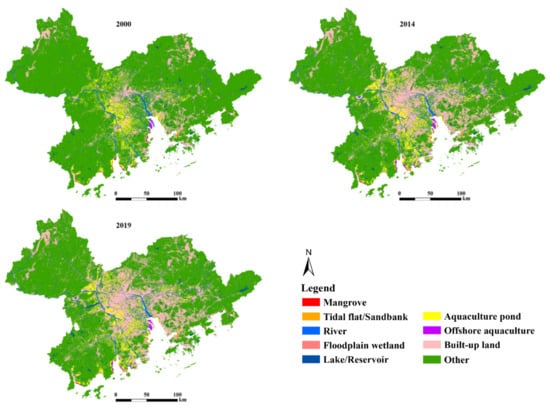 - Wang, J. Coastal Land Use/Land Cover Change and the Ecological Environmental Effects in Pearl River Estuary; Guangzhou Institute of Geochemistry, Chinese Academy of Sciences: Guangzhou, China, 2018. [Google Scholar]