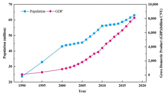The rapid urbanization in the GBA has increased the demand for residential land, agricultural land, and industrial land, bringing about a boom in reclamation [66,68]. Studies have shown that the main way to relieve land supply pressure in China’s coastal cities is reclamation activities [66,69]. Figure 9 shows the number of resident population and gross domestic product (GDP) between 1990 and 2018 providing by the GBA City Cluster Yearbook. Both the resident population and GDP of the GBA have grown rapidly. By 2018, the GDP of the GBA was 810.4850 billion and the number of resident populations was 63.999 million, which were 80.49 times and 2.66 times of 1990, respectively. Rapid population growth has led to the expansion of urban scale, and high economic growth has been accompanied by a proliferation of various industrial parks, technology parks, and pioneer parks [67], which have placed demands on land supply and brought about a boom in reclamation. In addition, aquaculture plays an important role in the economic development of the GBA [9,70]. The coastal aquaculture and reclamation activities in the GBA have never ceased. Rather, they have become the main distributions of mulberry fishponds [67,70], which are the reason for the increasing number of both types of artificial wetlands, aquaculture ponds, and offshore aquaculture.