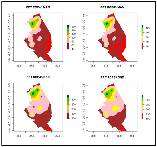 Figure 2. Precipitation range across MAM and OND for 2040 RCP’s 4.5 and 8.5.