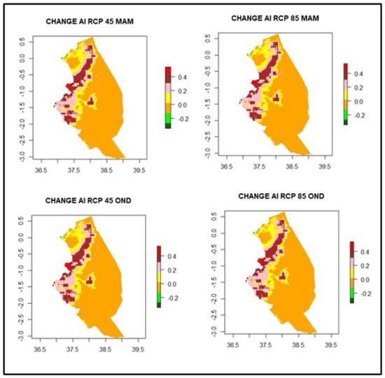 Figure 7. Changesin aridity index during MAM, OND in 2040 for RCPs 4.5 and 8.5.