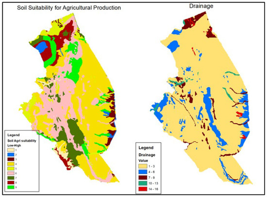 Soil suitability and soil drainage derived from the soil and elevation data indicate the biophysical suitability for agricultural production (Figure 9).