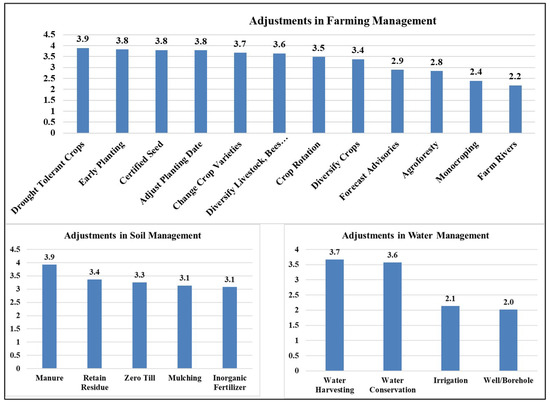 Figure 12. Farmers adaptation strategies for farming, soil and water management.