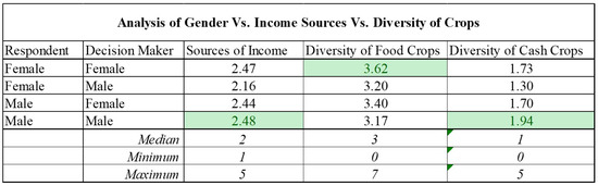 Gender influences the success of adaptation mechanisms. For example, the survey found that female-headed households adapted by diversifying food crops, while male-headed households adapted by diversifying cash crops with reported higher incomes, as seen in Figure 14. Female-headed households were more interested in improving their food security first. Future adaptation mechanisms will need to be structured with the sensitivities of gender and population groups considered. For example, high-yielding, drought-resistant and early maturing food crops would be more appropriate for female-headed households.