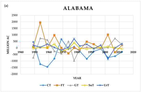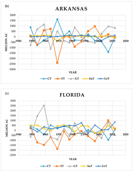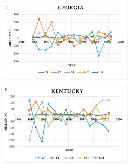 5.1. Land Use Changes in Individual States