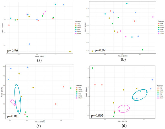 - Lozupone, C.A.; Hamady, M.; Kelley, S.T.; Knight, R. Quantitative and Qualitative β Diversity Measures Lead to Different Insights into Factors That Structure Microbial Communities. Appl. Environ. Microbiol. 2007, 73, 1576–1585. [Google Scholar] [CrossRef] [PubMed]