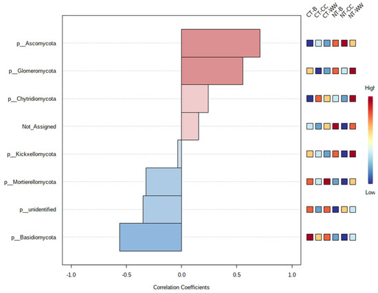 | Treatments | Ascomycota (%) | Basidiomycota (%) | Mortierellomycota (%) | Chytridiomycota (%) | Glomeromycota (%) |