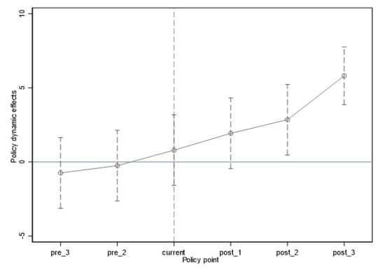 In Equation (2), is the average economic development results of the county after agricultural and rural reforms during period, is the average economic development results of the control group county during period and is a time vector of control variables.
