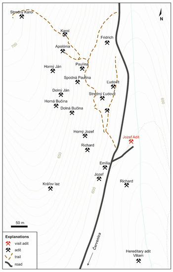- Baláž, B.; Kotuľák, P. Geologická stavba a metalogenéza stratovulkánu Zlatá Baňa. Min.—Svet Nerostu A Drahych Kamenu 2001, IX, 246–248. [Google Scholar]