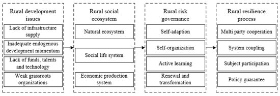 Since the beginning of the 21st century, scholars at home and abroad have begun to apply resilience theory in rural areas. Contextually, rural resilience theory is characterized by dynamic balance, emphasizing that the countryside is a self-healing system [2,4] with the ability to resist changes, absorb disturbances, and adapt under uncertain circumstances. Positive responses maintain effective, i.e., resilient, development [3,5,6,7]. Wilson further enriched the definition of rural resilience on this basis, arguing that rural resilience is a process of continuously maintaining the balance between rural social, economic, and environmental needs while successfully withstanding endogenous and exogenous changes [8]. Theoretically, research on rural resilience mostly exists in the fields of geography and sociology; scholars of different disciplines may differ significantly in their definition of this concept. For example, geographers [9] believe that rural resilience includes the ability of rural systems to resist and adapt to external disturbances and shocks, as well as the ability to transform and achieve new development [10]. Sociologists regard rural resilience as a governance method adopted by multiple subjects to maintain organizational stability and promote organizational change in response to risks [11].