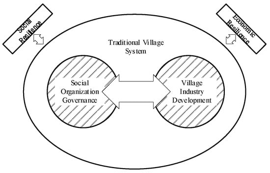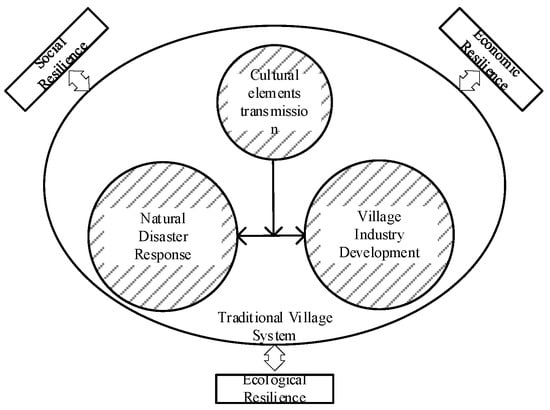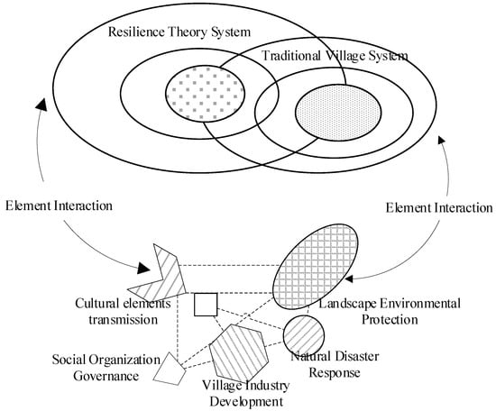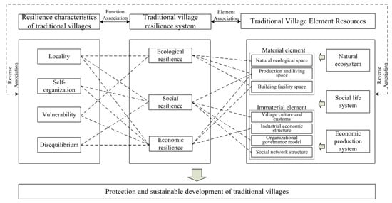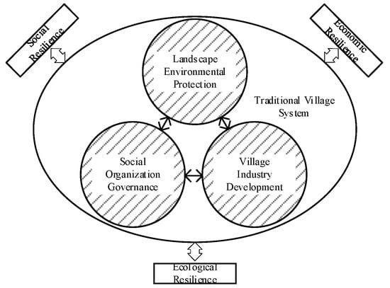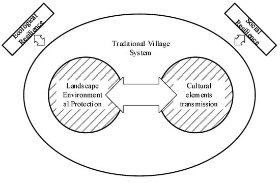 In today’s context of urbanization, traditional villages are characterized by locality, self-organization, vulnerability, and imbalance. Resilience theory aligns to some extent with practical needs for the protection and development of traditional villages and in solving rural problems. The present study was conducted in an attempt to build a correlation framework of “resilience theory-traditional village protection and development” from the dual aspects of “element correlation” and “role correlation” (Figure 2).