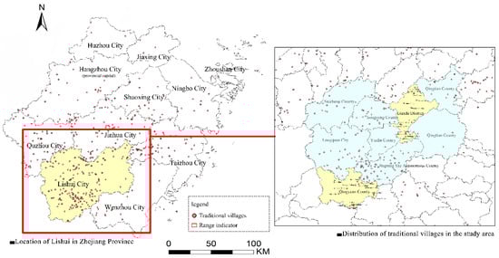 Fuzzy-set QCA (fsQCA) requires that selected cases have sufficient similarity (in background or characteristics) to be comparable in certain dimensions. To strengthen the external effectiveness of the results and facilitate the full comparison of cases, case selection should also pursue the maximum heterogeneity between cases [22]. Twenty-eight national traditional villages in Liandu District and Qingyuan County, which contains Lishui City, were selected as research cases for the purposes of this study accordingly (Figure 3). Among them, Liandu District, as the administrative center of Lishui City, intuitively reflects the impact of urbanization on traditional suburban villages. Qingyuan County is located to the east of Lishui City and at the junction of Zhejiang and Fujian provinces. Most of its traditional villages are located in regions with relatively remote geographical locations and ineffective traffic and economic conditions. Therefore, it is highly representative of the characteristics at play in the protection and development of traditional villages.