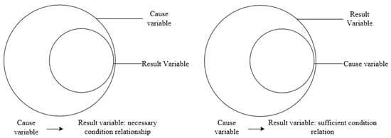 QCA is a set theory configuration analysis method based on Boolean algebra. It was first proposed by Charles C. Ragin, an American sociologist, in his 1987 book Comparative Methods: Beyond Qualitative and Quantitative Strategies; it is regarded as a standard method integrating quantitative and qualitative analysis [23]. At its core, in QCA, the generation of a result may be affected by multiple cause combinations and paths. It aims to explore the collective relationship between cause variables and configuration/result variables from small-sample data through the integration of empirical data and relevant theories, thus revealing multiple concurrent causal relationships and causal asymmetry [24,25,26]. In a traditional research process, conversely, researchers typically regard each antecedent condition as an independent cause of the result; that is, each cause can affect the production of the result and a simple causal relationship is assumed, thus ignoring the fact of limited diversity [27].