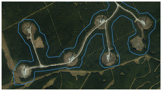 Figure 8 shows a visualisation of the main land cover/land use transitions for both time periods as connected graphs. The two graphs show at a glance that, from 2012 to 2018, there were a substantially greater number of transitions in land cover/land use than from 2006 to 2012 (thicker arrows of darker colour and red hue). In both time periods, the largest transitions in terms of change area were between 312 (coniferous forest) and 324 (transitional woodland-shrub) in both directions, which indicate rotation forestry practices for softwood production and tree planting after harvest. As already mentioned, the transition from 312 (coniferous forest) to 121 (Industrial or commercial units) are largely indicative of new wind turbines in forested landscapes for the primary purpose of renewable energy generation. This type of change is classed as 121 under the technical methodology of CORINE because the primary purpose of the land use changes from forestry to energy production, even though in the vast majority of cases the wind turbines only require small clearings in the forest and most trees remain intact (Figure 9).