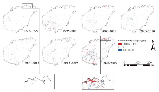 Carbon storage dynamics of Hainan Island from 1992 to 2019.