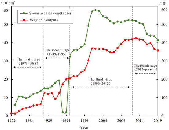 Similarly, the pilot farmers (seed-households, for instance the “five Kings” stated above) or enterprises had such spin-off and innovation overflow processes. By 1985, the number of vegetable varieties planted in the city had increased to more than 30. However, since such climate conditions as temperature had a huge impact on vegetable cultivation, vegetable market transactions were seasonal, and the development of the vegetable industry was limited. By 1988, big field vegetables were planted on about 3333 hm2 of arable land in the city, and the scale and efficiency of clustering were not high.