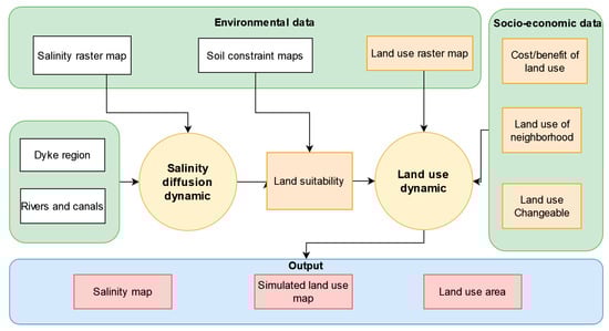 The model was designed for the Mekong Delta, a coastal region; hence, the model can be applied in delta areas with similar conditions. In addition, the model involves fully open-source code that operates on many different operating systems, so it could be extended to be applied to many land-use studies.